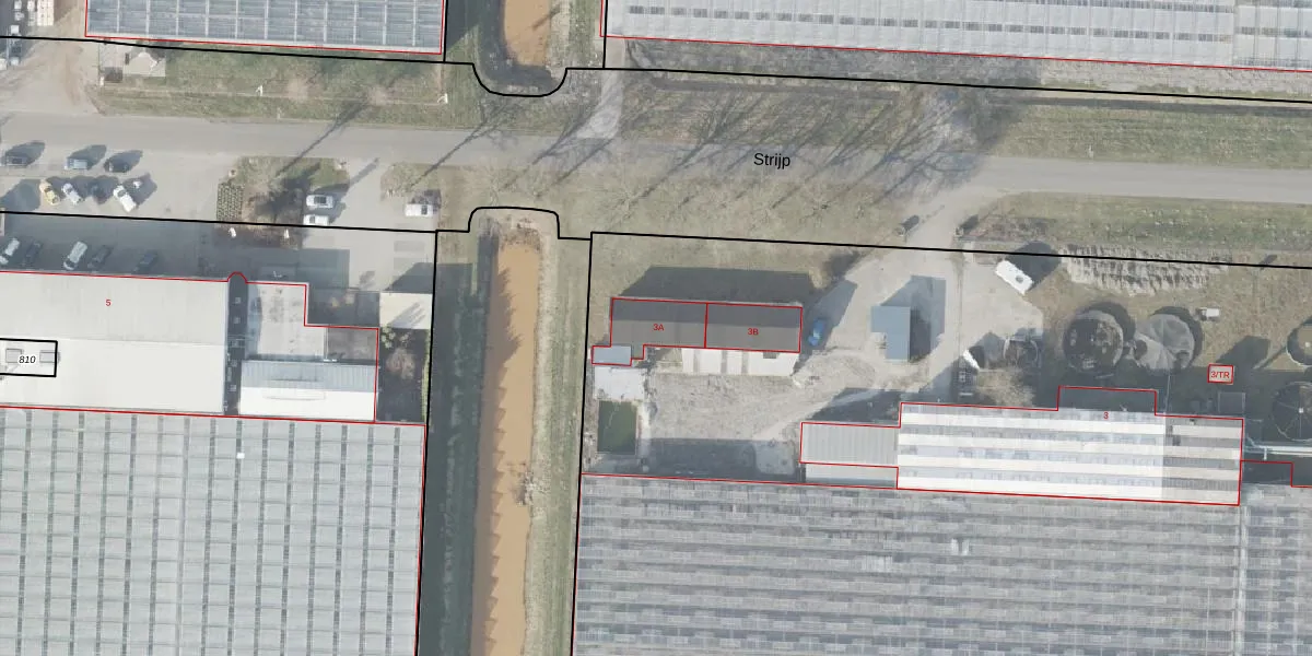 Het perceel waarop Strijp 3-A staat heeft een oppervlakte van 4,3 ha. Dit is een zeer groot perceel. De perceeloppervlakte wordt geregistreerd door het Kadaster. Gedetailleerde informatie over de maten van dit perceel kunt u vinden in het rapport Kadastrale kaart met maatvoering van Strijp 3-A.
