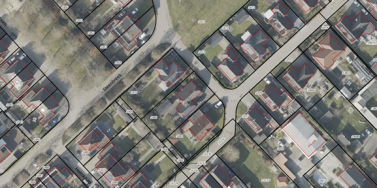 Het perceel waarop Valkruid 25 staat heeft een oppervlakte van 626 m². Dit is een groot perceel. De perceeloppervlakte wordt geregistreerd door het Kadaster. Gedetailleerde informatie over de maten van dit perceel kunt u vinden in het rapport Kadastrale kaart met maatvoering van Valkruid 25.