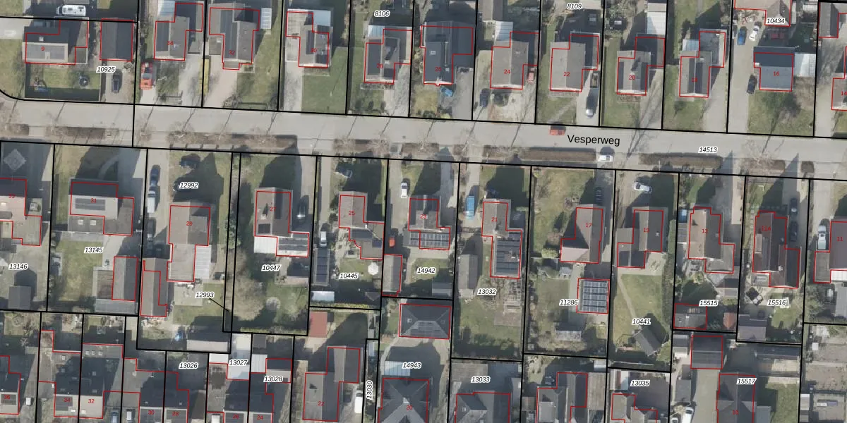 Vesperweg 23 is gelegen op kadastraal perceel EMN00I14942. Deze kadastrale aanduiding is uniek en wordt gebruikt door het Kadaster om eigendomsrechten en andere zakelijke rechten vast te leggen. Het perceel maakt onderdeel uit van de kadastrale gemeente Emmen.