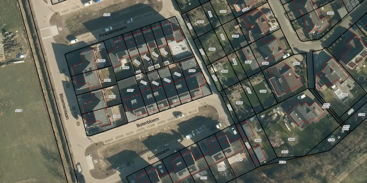 Gebruik de zoekbalk of klik op een perceel voor informatie over de adressen binnen dit perceel.