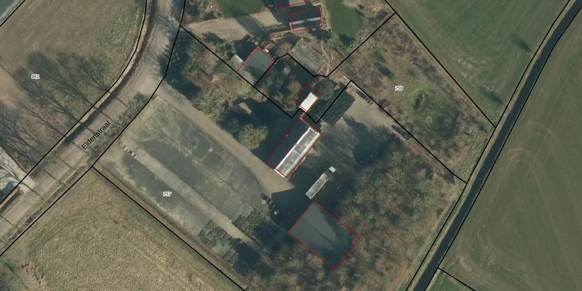 Het perceel waarop Eldertstraat 8 staat heeft een oppervlakte van 7355 m². Dit is een zeer groot perceel. De perceeloppervlakte wordt geregistreerd door het Kadaster. Gedetailleerde informatie over de maten van dit perceel kunt u vinden in het rapport Kadastrale kaart met maatvoering van Eldertstraat 8.