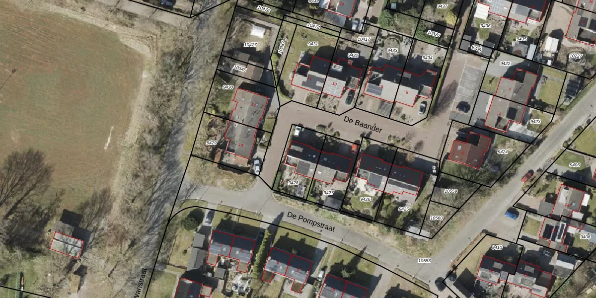 De Baander 1 is gelegen op kadastraal perceel ODN00A9428. Deze kadastrale aanduiding is uniek en wordt gebruikt door het Kadaster om eigendomsrechten en andere zakelijke rechten vast te leggen. Het perceel maakt onderdeel uit van de kadastrale gemeente Odoorn.