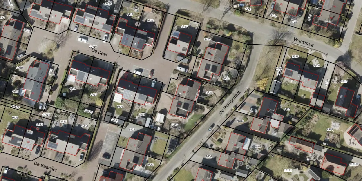 Het perceel waarop De Deel 16 staat heeft een oppervlakte van 349 m². Dit is een groot perceel. De perceeloppervlakte wordt geregistreerd door het Kadaster. Gedetailleerde informatie over de maten van dit perceel kunt u vinden in het rapport Kadastrale kaart met maatvoering van De Deel 16.