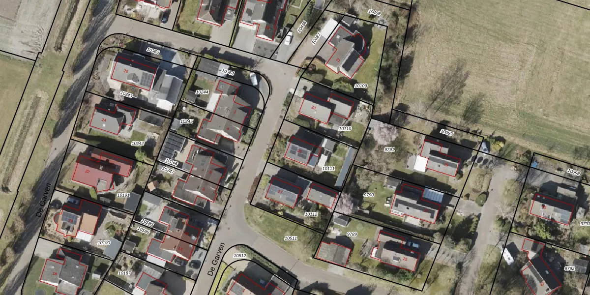 Het perceel waarop De Garven 25 staat heeft een oppervlakte van 424 m². Dit is een groot perceel. De perceeloppervlakte wordt geregistreerd door het Kadaster. Gedetailleerde informatie over de maten van dit perceel kunt u vinden in het rapport Kadastrale kaart met maatvoering van De Garven 25.