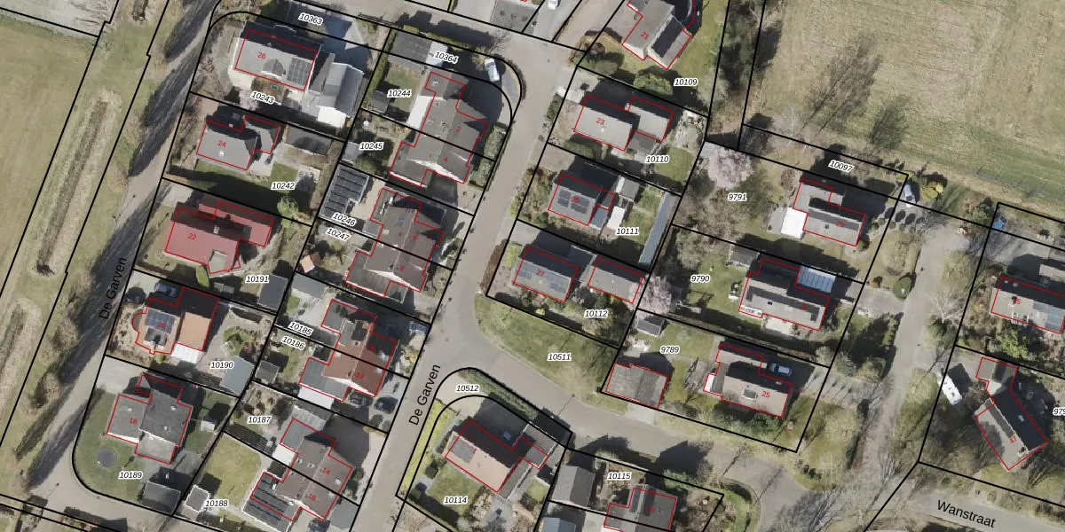 Het perceel waarop De Garven 27 staat heeft een oppervlakte van 422 m². Dit is een groot perceel. De perceeloppervlakte wordt geregistreerd door het Kadaster. Gedetailleerde informatie over de maten van dit perceel kunt u vinden in het rapport Kadastrale kaart met maatvoering van De Garven 27.