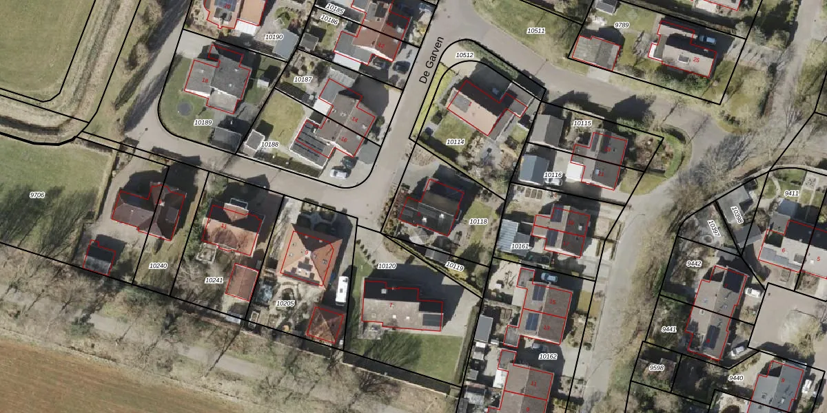 Het perceel waarop De Garven 5 staat heeft een oppervlakte van 528 m². Dit is een groot perceel. De perceeloppervlakte wordt geregistreerd door het Kadaster. Gedetailleerde informatie over de maten van dit perceel kunt u vinden in het rapport Kadastrale kaart met maatvoering van De Garven 5.