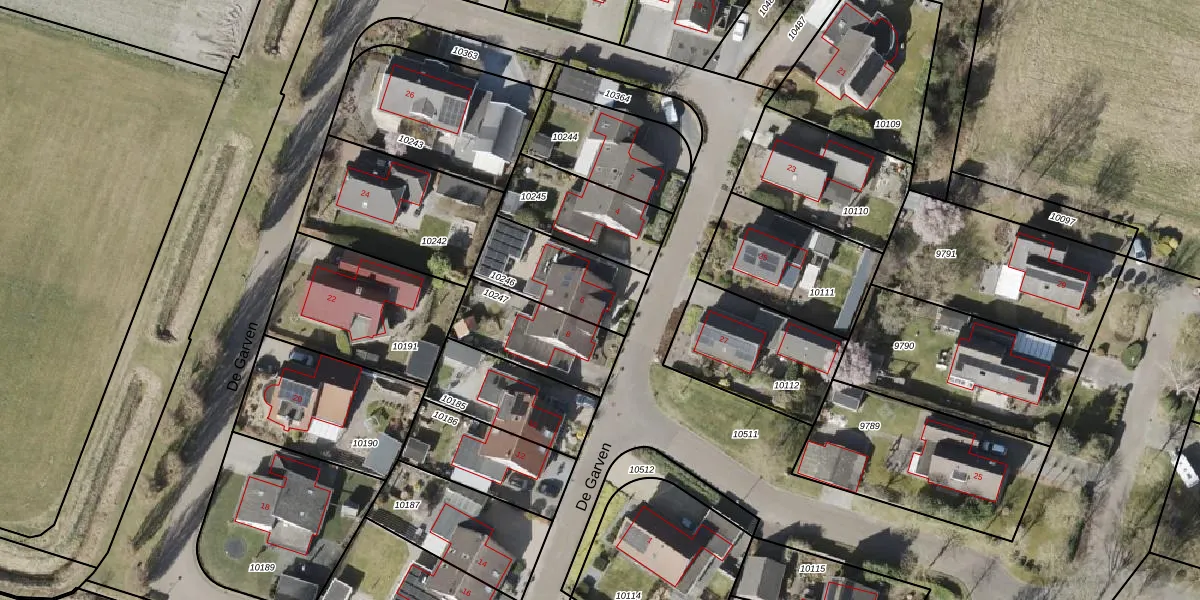 Het perceel waarop De Garven 6 staat heeft een oppervlakte van 303 m². Dit is een groot perceel. De perceeloppervlakte wordt geregistreerd door het Kadaster. Gedetailleerde informatie over de maten van dit perceel kunt u vinden in het rapport Kadastrale kaart met maatvoering van De Garven 6.