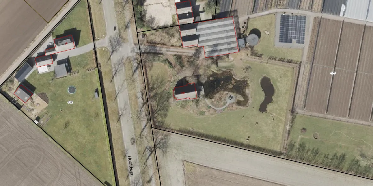 Het perceel waarop Hoofdweg 19-B staat heeft een oppervlakte van 2,2 ha. Dit is een zeer groot perceel. De perceeloppervlakte wordt geregistreerd door het Kadaster. Gedetailleerde informatie over de maten van dit perceel kunt u vinden in het rapport Kadastrale kaart met maatvoering van Hoofdweg 19-B.