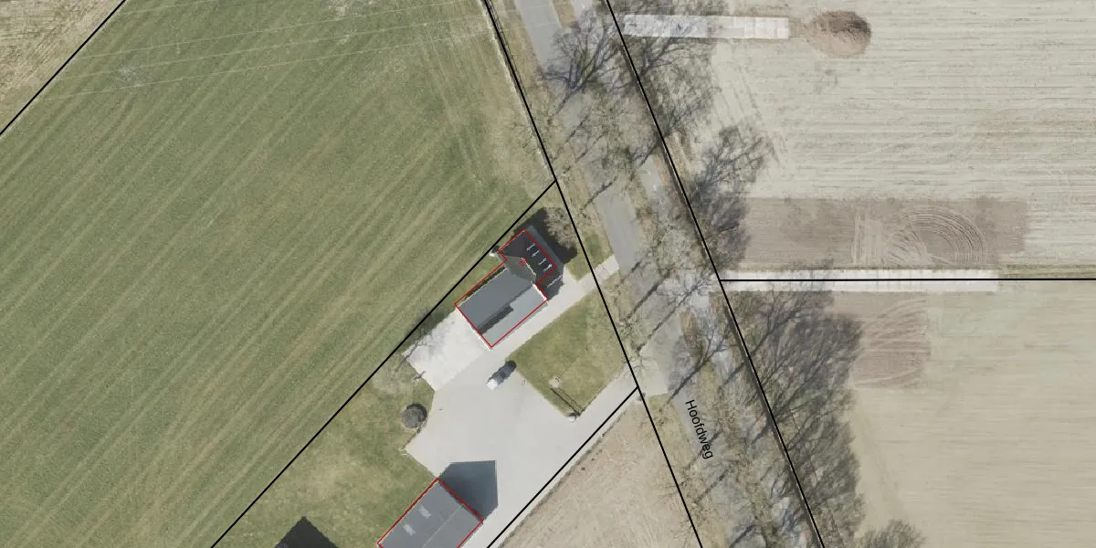 Het perceel waarop Hoofdweg 28 staat heeft een oppervlakte van 2,4 ha. Dit is een zeer groot perceel. De perceeloppervlakte wordt geregistreerd door het Kadaster. Gedetailleerde informatie over de maten van dit perceel kunt u vinden in het rapport Kadastrale kaart met maatvoering van Hoofdweg 28.