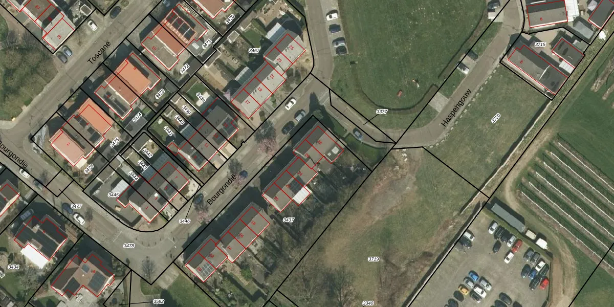 Het perceel waarop Bourgondië 26 staat heeft een oppervlakte van 1940 m². Dit is een zeer groot perceel. De perceeloppervlakte wordt geregistreerd door het Kadaster. Gedetailleerde informatie over de maten van dit perceel kunt u vinden in het rapport Kadastrale kaart met maatvoering van Bourgondië 26.