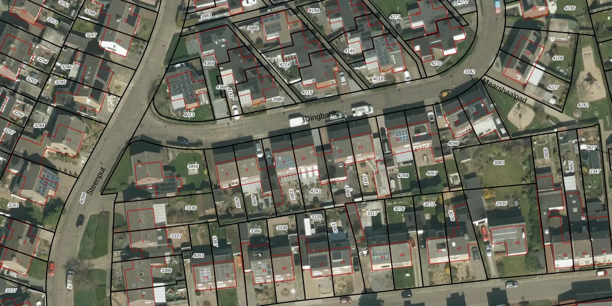 Gebruik de zoekbalk of klik op een perceel voor informatie over de adressen binnen dit perceel.
