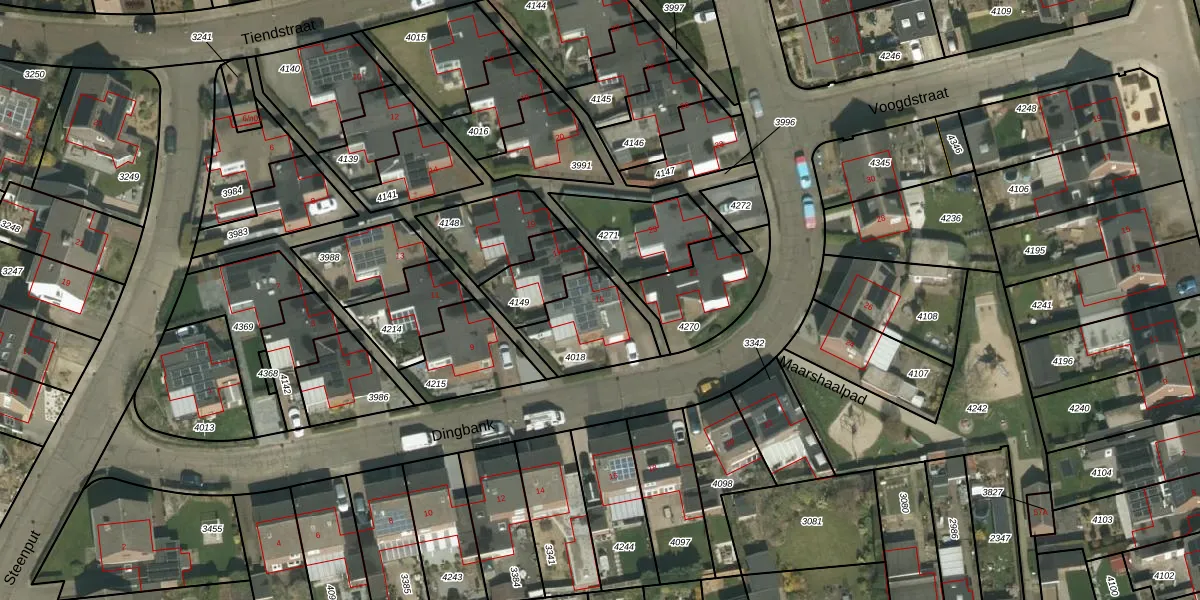 Gebruik de zoekbalk of klik op een perceel voor informatie over de adressen binnen dit perceel.