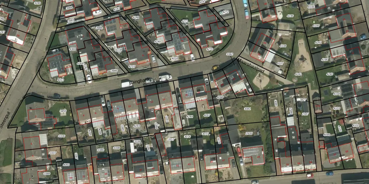 Het perceel waarop Dingbank 16 staat heeft een oppervlakte van 268 m². Dit is een middelgroot perceel. De perceeloppervlakte wordt geregistreerd door het Kadaster. Gedetailleerde informatie over de maten van dit perceel kunt u vinden in het rapport Kadastrale kaart met maatvoering van Dingbank 16.