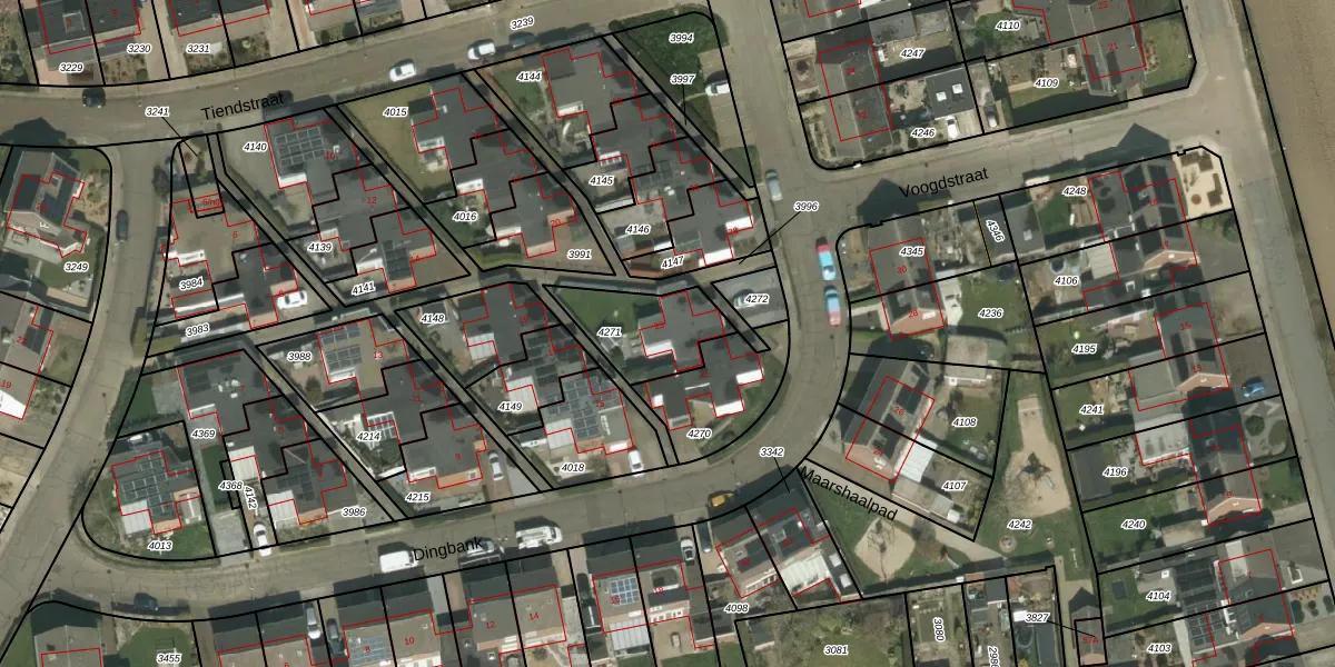 Gebruik de zoekbalk of klik op een perceel voor informatie over de adressen binnen dit perceel.