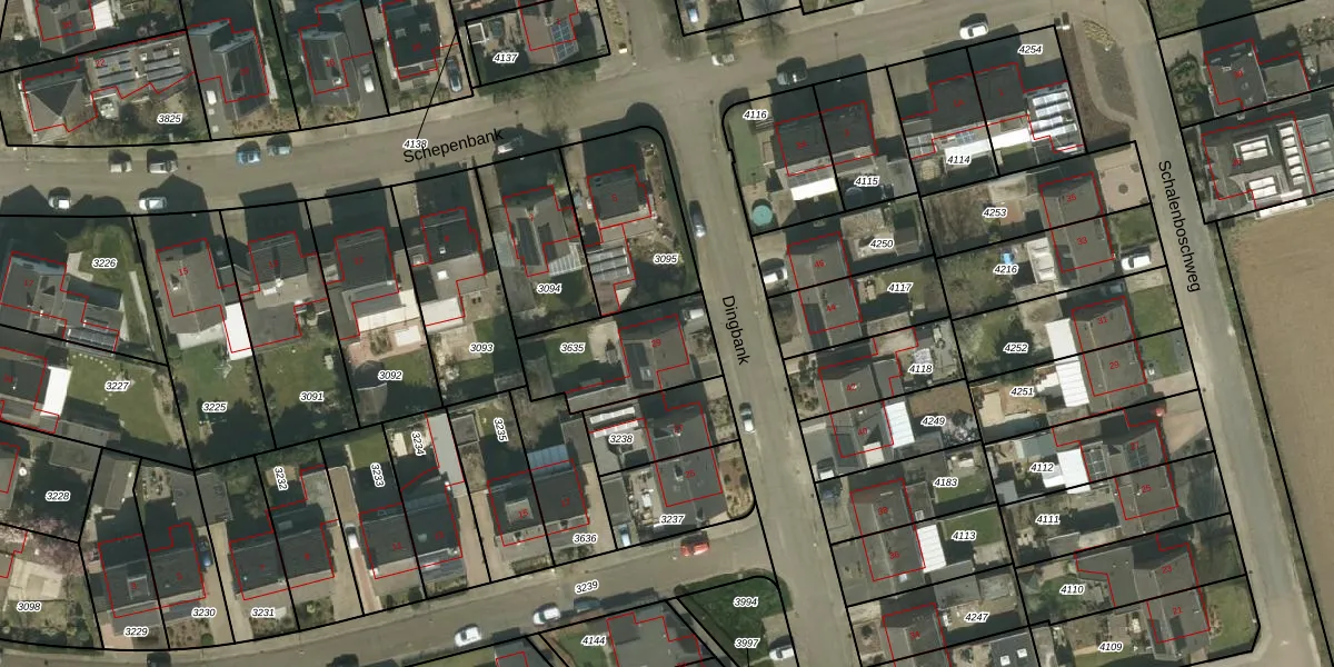 Het perceel waarop Dingbank 29 staat heeft een oppervlakte van 370 m². Dit is een groot perceel. De perceeloppervlakte wordt geregistreerd door het Kadaster. Gedetailleerde informatie over de maten van dit perceel kunt u vinden in het rapport Kadastrale kaart met maatvoering van Dingbank 29.