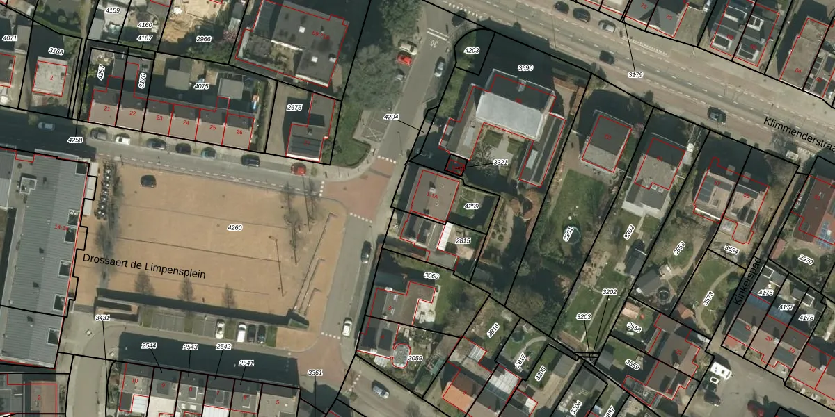 Drossaert de Limpensplein 1 is gelegen op kadastraal perceel KMN02C4259. Deze kadastrale aanduiding is uniek en wordt gebruikt door het Kadaster om eigendomsrechten en andere zakelijke rechten vast te leggen. Het perceel maakt onderdeel uit van de kadastrale gemeente Klimmen.