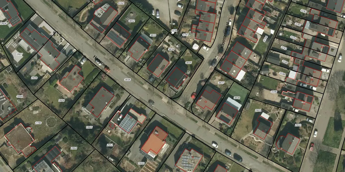 Gebruik de zoekbalk of klik op een perceel voor informatie over de adressen binnen dit perceel.