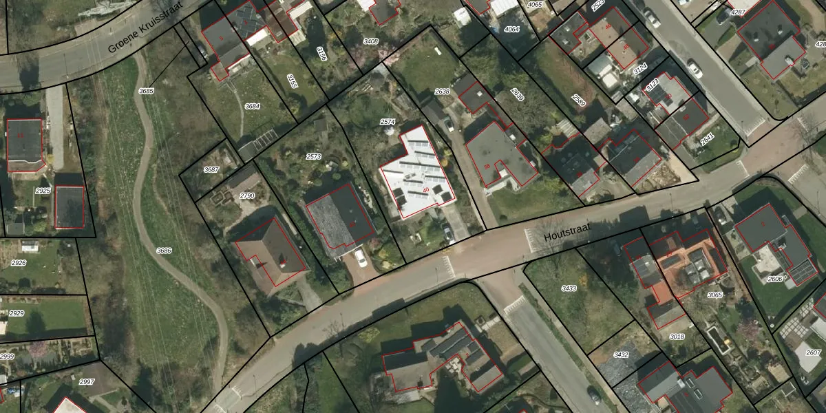 Houtstraat 40 is gelegen op kadastraal perceel KMN02C2574. Deze kadastrale aanduiding is uniek en wordt gebruikt door het Kadaster om eigendomsrechten en andere zakelijke rechten vast te leggen. Het perceel maakt onderdeel uit van de kadastrale gemeente Klimmen.