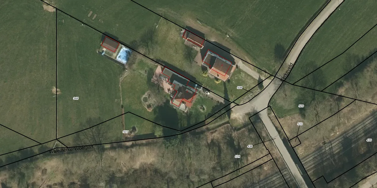 Kerkeveld 1 is gelegen op kadastraal perceel VRD00N344. Deze kadastrale aanduiding is uniek en wordt gebruikt door het Kadaster om eigendomsrechten en andere zakelijke rechten vast te leggen. Het perceel maakt onderdeel uit van de kadastrale gemeente Voerendaal.