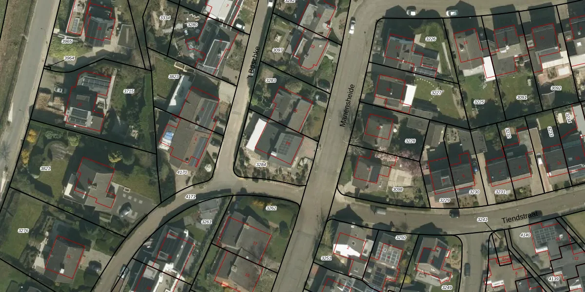 Het perceel waarop Manensheide 19 staat heeft een oppervlakte van 500 m². Dit is een groot perceel. De perceeloppervlakte wordt geregistreerd door het Kadaster. Gedetailleerde informatie over de maten van dit perceel kunt u vinden in het rapport Kadastrale kaart met maatvoering van Manensheide 19.