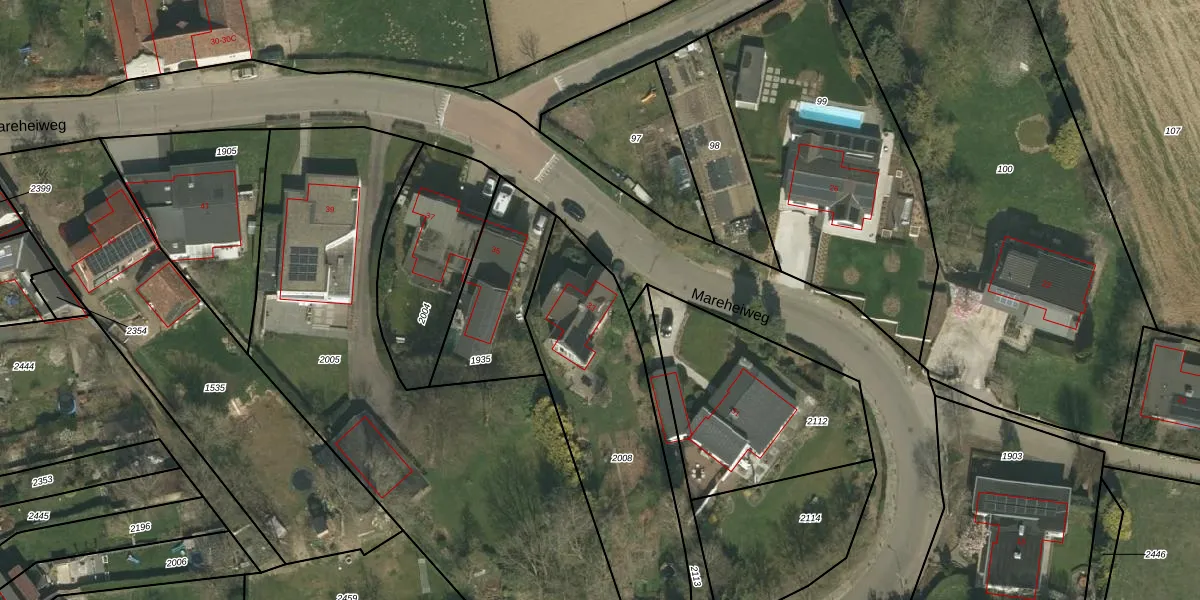 Mareheiweg 33 is gelegen op kadastraal perceel KMN02B2008. Deze kadastrale aanduiding is uniek en wordt gebruikt door het Kadaster om eigendomsrechten en andere zakelijke rechten vast te leggen. Het perceel maakt onderdeel uit van de kadastrale gemeente Klimmen.