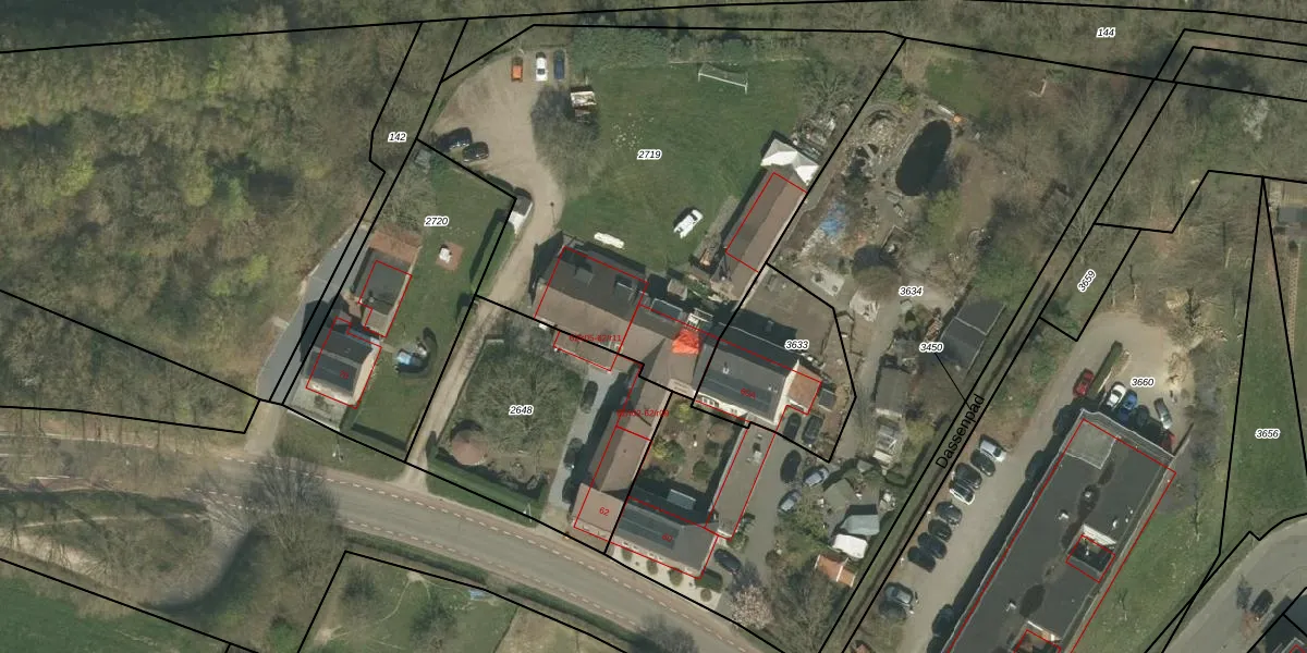 Het perceel waarop Overheek 62-r09 staat heeft een oppervlakte van 2390 m². Dit is een zeer groot perceel. De perceeloppervlakte wordt geregistreerd door het Kadaster. Gedetailleerde informatie over de maten van dit perceel kunt u vinden in het rapport Kadastrale kaart met maatvoering van Overheek 62-r09.