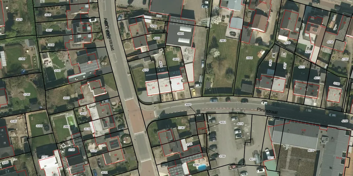 Het perceel waarop Pleinstraat 16 staat heeft een oppervlakte van 310 m². Dit is een groot perceel. De perceeloppervlakte wordt geregistreerd door het Kadaster. Gedetailleerde informatie over de maten van dit perceel kunt u vinden in het rapport Kadastrale kaart met maatvoering van Pleinstraat 16.