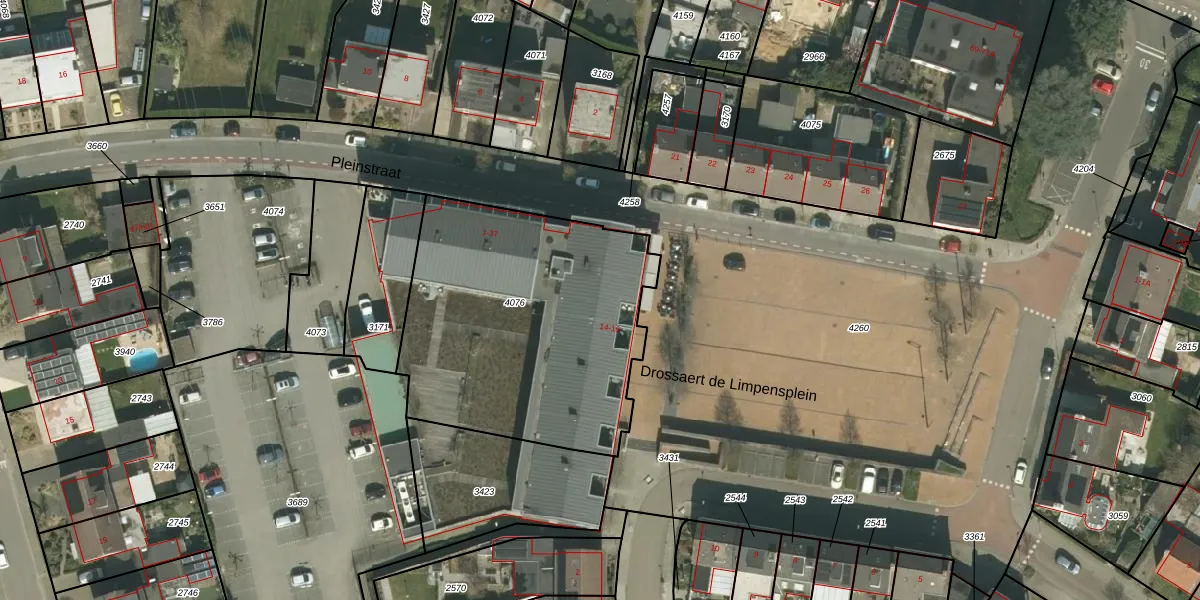 Het perceel waarop Pleinstraat 21 staat heeft een oppervlakte van 1440 m². Dit is een zeer groot perceel. De perceeloppervlakte wordt geregistreerd door het Kadaster. Gedetailleerde informatie over de maten van dit perceel kunt u vinden in het rapport Kadastrale kaart met maatvoering van Pleinstraat 21.