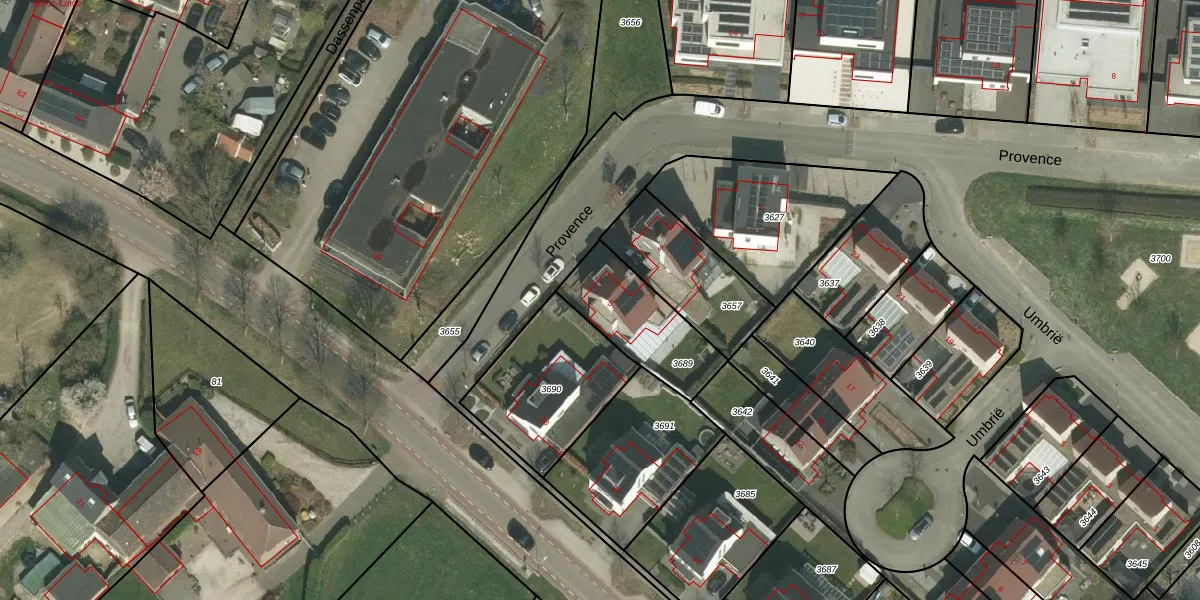 Gebruik de zoekbalk of klik op een perceel voor informatie over de adressen binnen dit perceel.