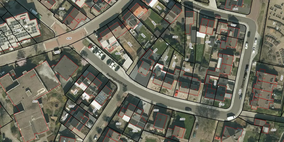 Het perceel waarop Remigiusstraat 26 staat heeft een oppervlakte van 409 m². Dit is een groot perceel. De perceeloppervlakte wordt geregistreerd door het Kadaster. Gedetailleerde informatie over de maten van dit perceel kunt u vinden in het rapport Kadastrale kaart met maatvoering van Remigiusstraat 26.