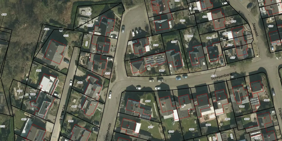 Het perceel waarop Schepenbank 22 staat heeft een oppervlakte van 427 m². Dit is een groot perceel. De perceeloppervlakte wordt geregistreerd door het Kadaster. Gedetailleerde informatie over de maten van dit perceel kunt u vinden in het rapport Kadastrale kaart met maatvoering van Schepenbank 22.