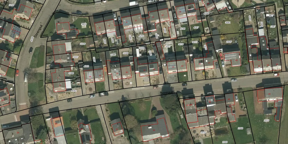 Het perceel waarop Termaar 37 staat heeft een oppervlakte van 272 m². Dit is een middelgroot perceel. De perceeloppervlakte wordt geregistreerd door het Kadaster. Gedetailleerde informatie over de maten van dit perceel kunt u vinden in het rapport Kadastrale kaart met maatvoering van Termaar 37.