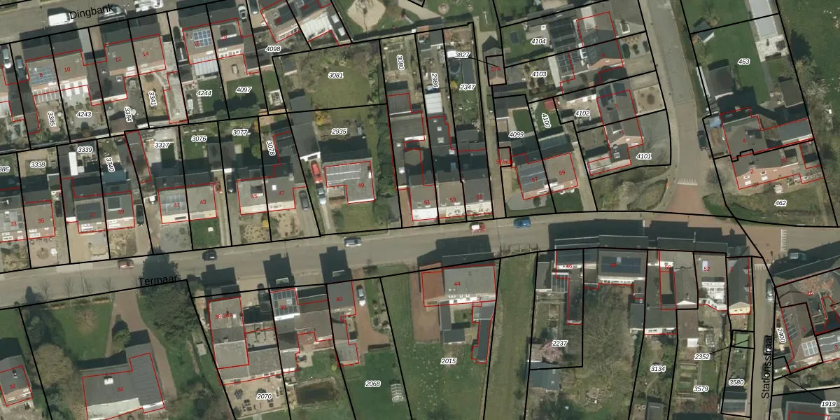 Het perceel waarop Termaar 51 staat heeft een oppervlakte van 404 m². Dit is een groot perceel. De perceeloppervlakte wordt geregistreerd door het Kadaster. Gedetailleerde informatie over de maten van dit perceel kunt u vinden in het rapport Kadastrale kaart met maatvoering van Termaar 51.