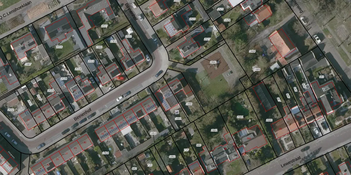 Gebruik de zoekbalk of klik op een perceel voor informatie over de adressen binnen dit perceel.