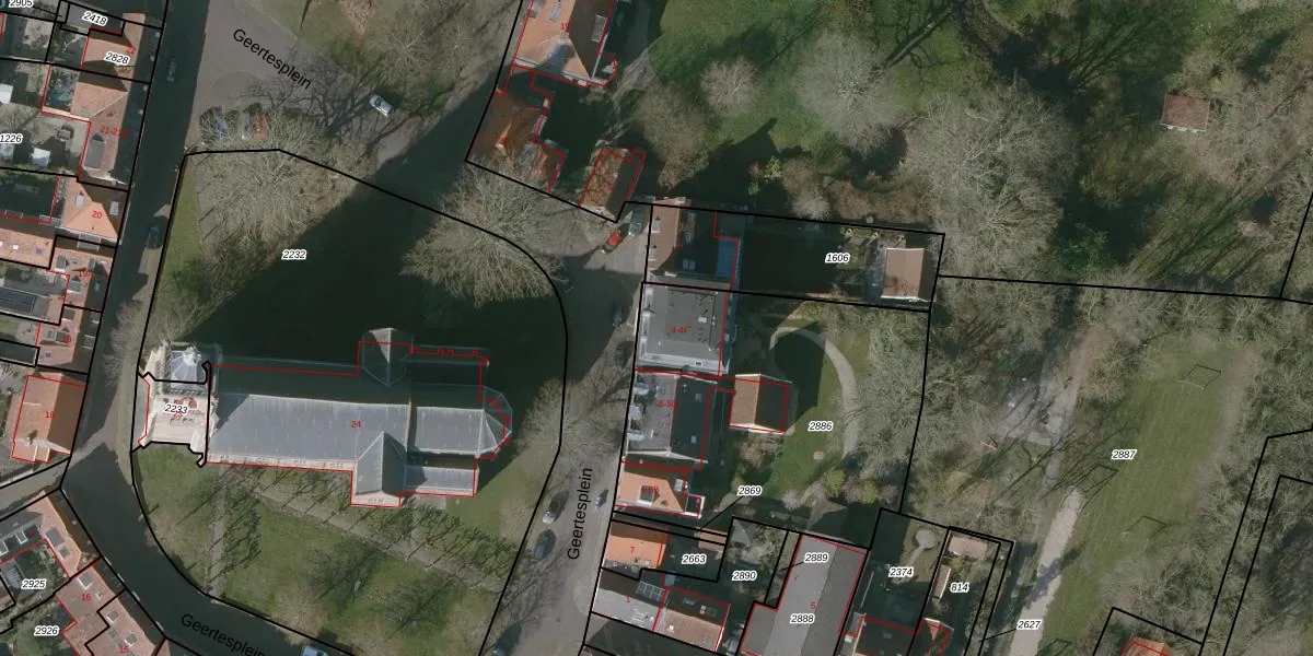 Het perceel waarop Geertesplein 4-C staat heeft een oppervlakte van 1575 m². Dit is een zeer groot perceel. De perceeloppervlakte wordt geregistreerd door het Kadaster. Gedetailleerde informatie over de maten van dit perceel kunt u vinden in het rapport Kadastrale kaart met maatvoering van Geertesplein 4-C.