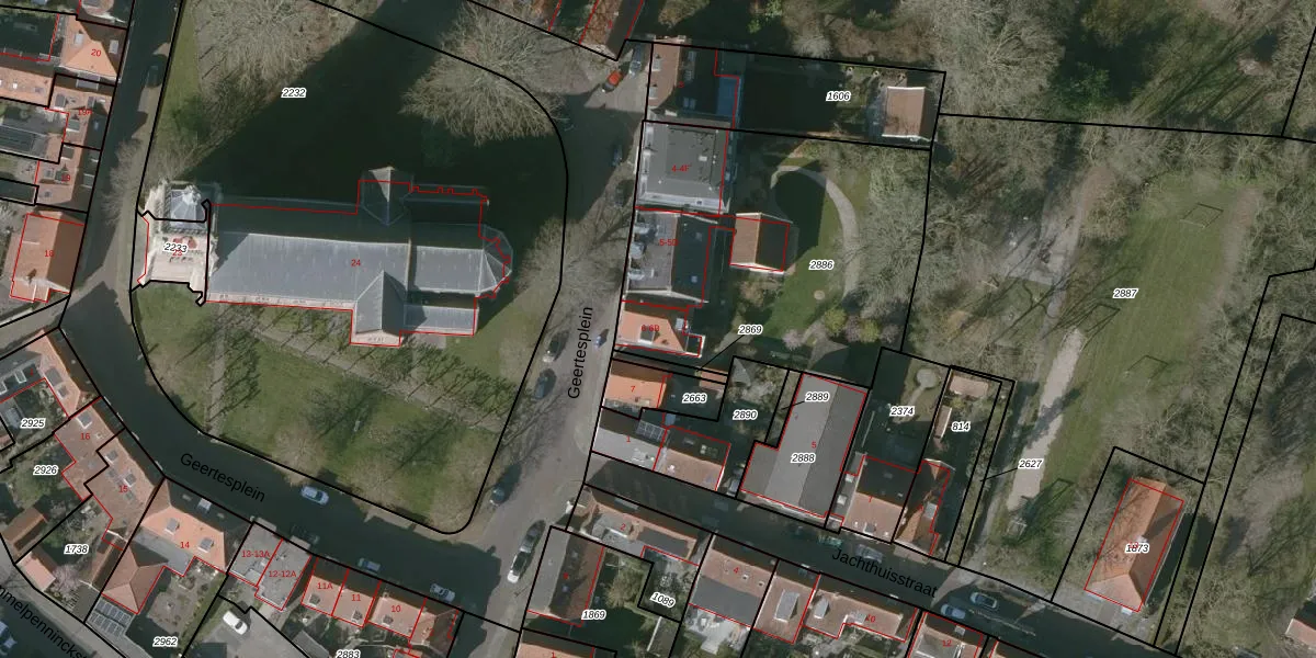 Het perceel waarop Geertesplein 6-A staat heeft een oppervlakte van 1575 m². Dit is een zeer groot perceel. De perceeloppervlakte wordt geregistreerd door het Kadaster. Gedetailleerde informatie over de maten van dit perceel kunt u vinden in het rapport Kadastrale kaart met maatvoering van Geertesplein 6-A.