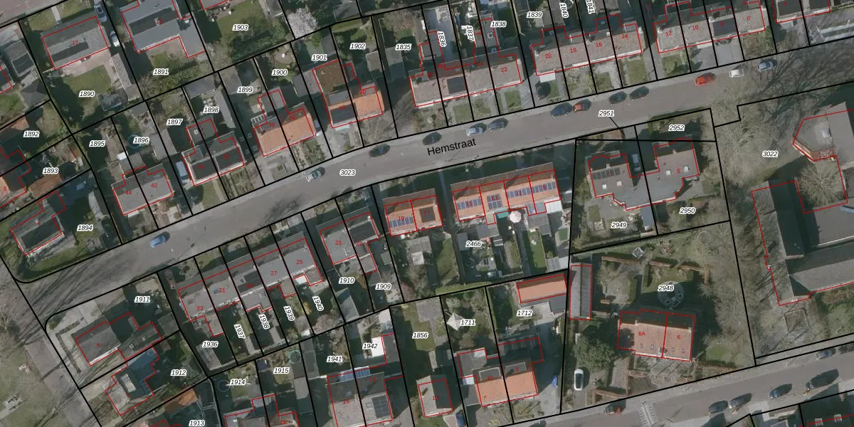 Het perceel waarop Hemstraat 17 staat heeft een oppervlakte van 1290 m². Dit is een zeer groot perceel. De perceeloppervlakte wordt geregistreerd door het Kadaster. Gedetailleerde informatie over de maten van dit perceel kunt u vinden in het rapport Kadastrale kaart met maatvoering van Hemstraat 17.