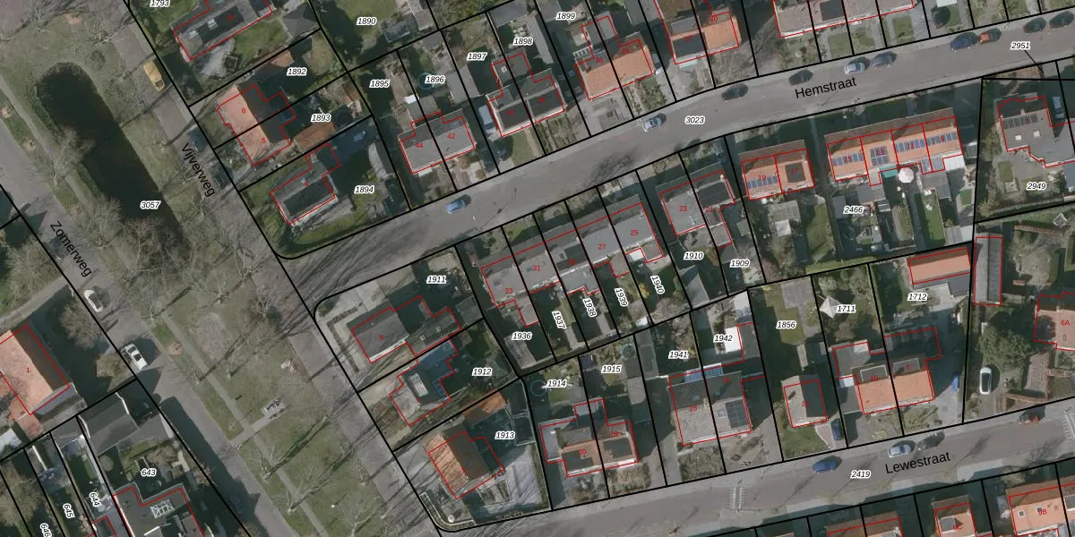 Gebruik de zoekbalk of klik op een perceel voor informatie over de adressen binnen dit perceel.