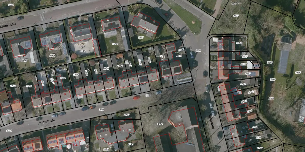 Gebruik de zoekbalk of klik op een perceel voor informatie over de adressen binnen dit perceel.
