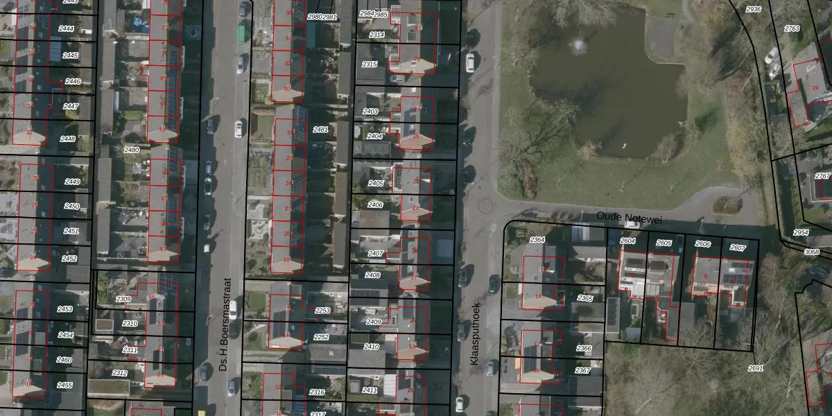 Gebruik de zoekbalk of klik op een perceel voor informatie over de adressen binnen dit perceel.