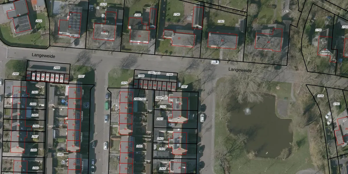 Het perceel waarop Langeweide 31 staat heeft een oppervlakte van 16 m². Dit is een klein perceel. De perceeloppervlakte wordt geregistreerd door het Kadaster. Gedetailleerde informatie over de maten van dit perceel kunt u vinden in het rapport Kadastrale kaart met maatvoering van Langeweide 31.