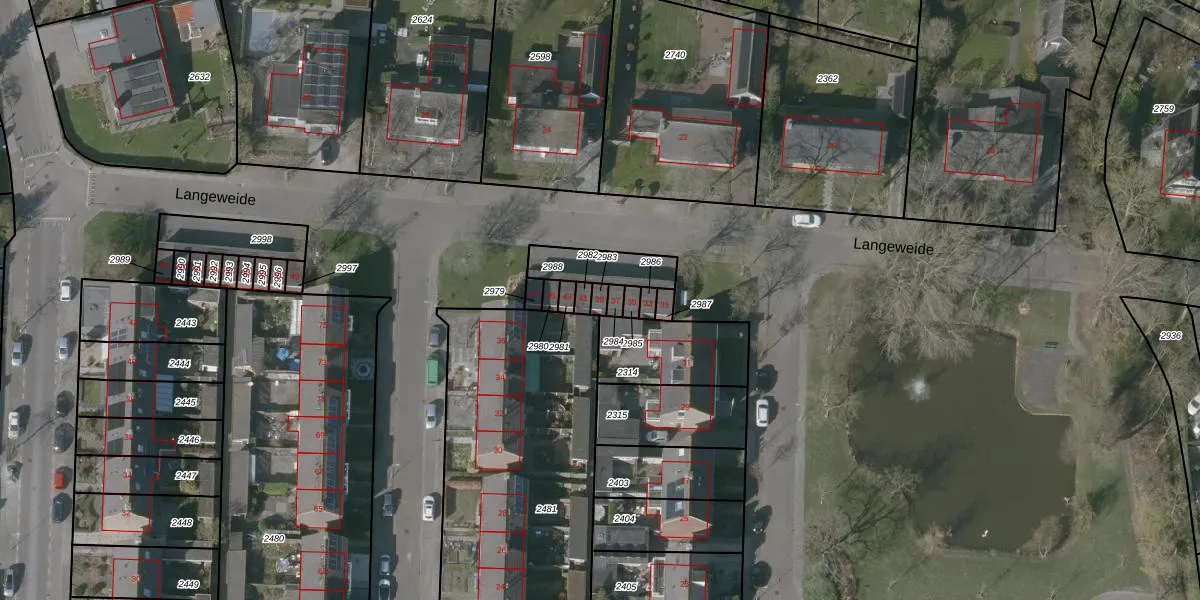 Het perceel waarop Langeweide 39 staat heeft een oppervlakte van 15 m². Dit is een klein perceel. De perceeloppervlakte wordt geregistreerd door het Kadaster. Gedetailleerde informatie over de maten van dit perceel kunt u vinden in het rapport Kadastrale kaart met maatvoering van Langeweide 39.