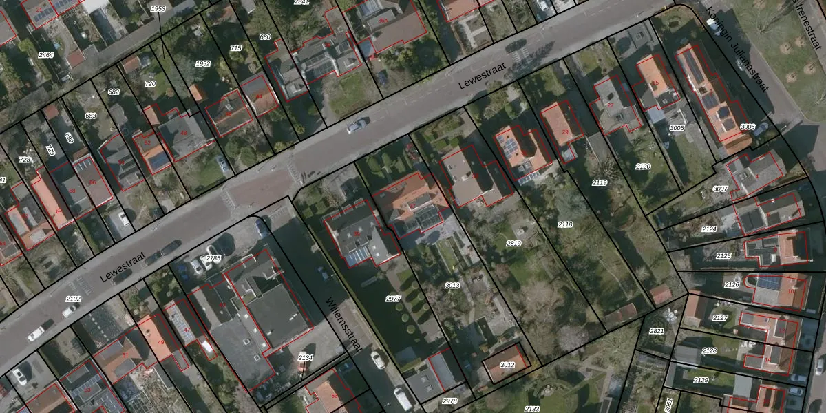 Het perceel waarop Lewestraat 37 staat heeft een oppervlakte van 965 m². Dit is een groot perceel. De perceeloppervlakte wordt geregistreerd door het Kadaster. Gedetailleerde informatie over de maten van dit perceel kunt u vinden in het rapport Kadastrale kaart met maatvoering van Lewestraat 37.