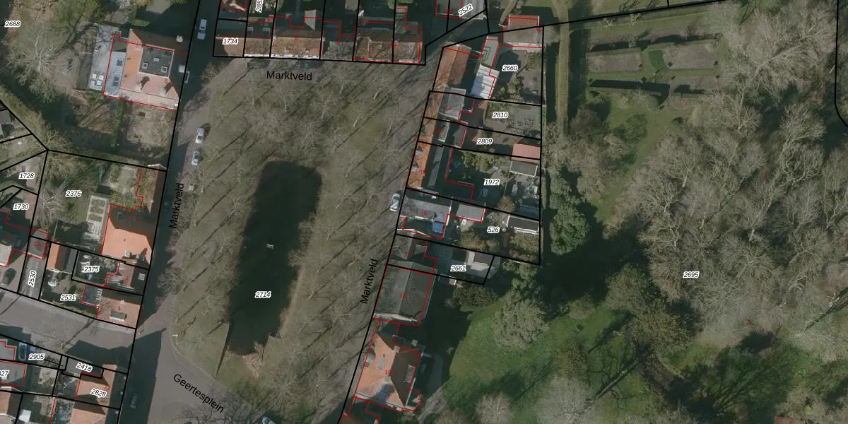 Het perceel waarop Marktveld 16 staat heeft een oppervlakte van 360 m². Dit is een groot perceel. De perceeloppervlakte wordt geregistreerd door het Kadaster. Gedetailleerde informatie over de maten van dit perceel kunt u vinden in het rapport Kadastrale kaart met maatvoering van Marktveld 16.