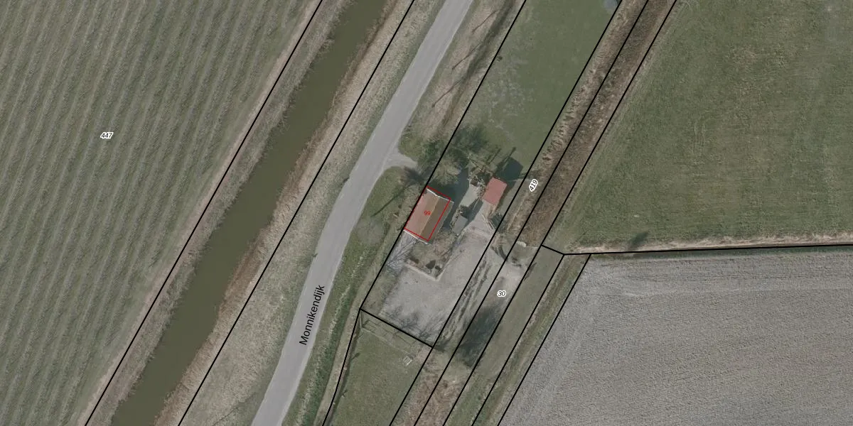 Het perceel waarop Monnikendijk 99 staat heeft een oppervlakte van 4940 m². Dit is een zeer groot perceel. De perceeloppervlakte wordt geregistreerd door het Kadaster. Gedetailleerde informatie over de maten van dit perceel kunt u vinden in het rapport Kadastrale kaart met maatvoering van Monnikendijk 99.