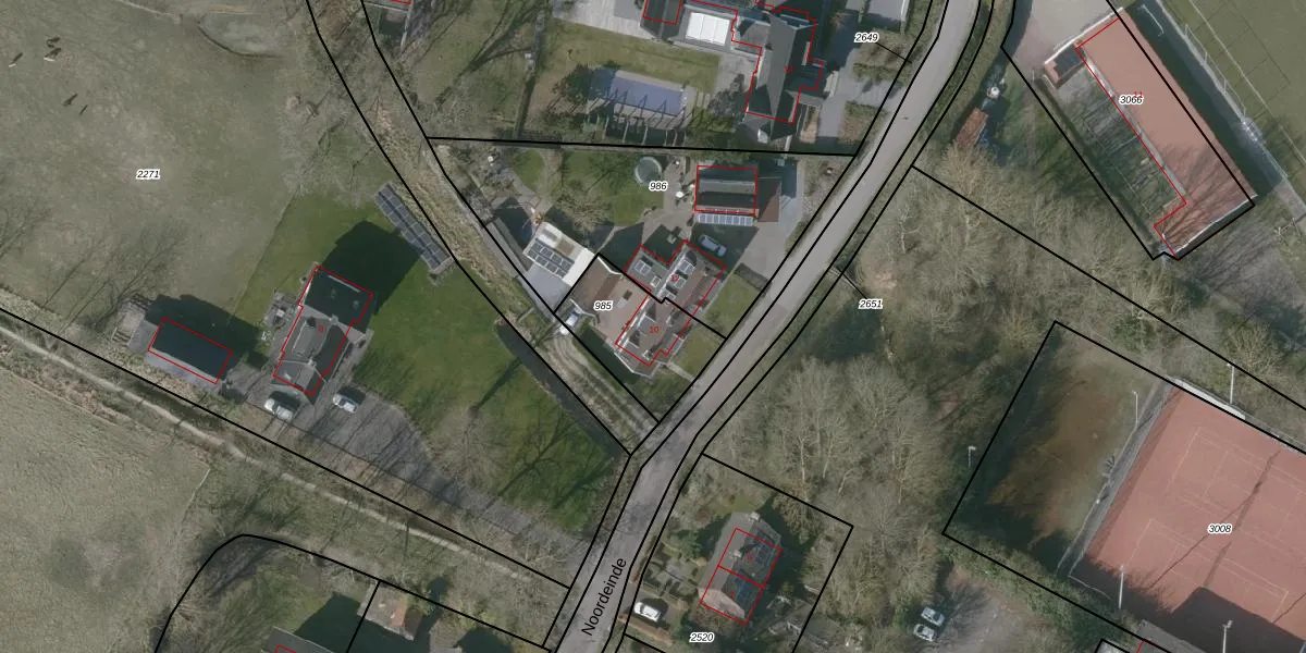 Het perceel waarop Noordeinde 10 staat heeft een oppervlakte van 320 m². Dit is een groot perceel. De perceeloppervlakte wordt geregistreerd door het Kadaster. Gedetailleerde informatie over de maten van dit perceel kunt u vinden in het rapport Kadastrale kaart met maatvoering van Noordeinde 10.