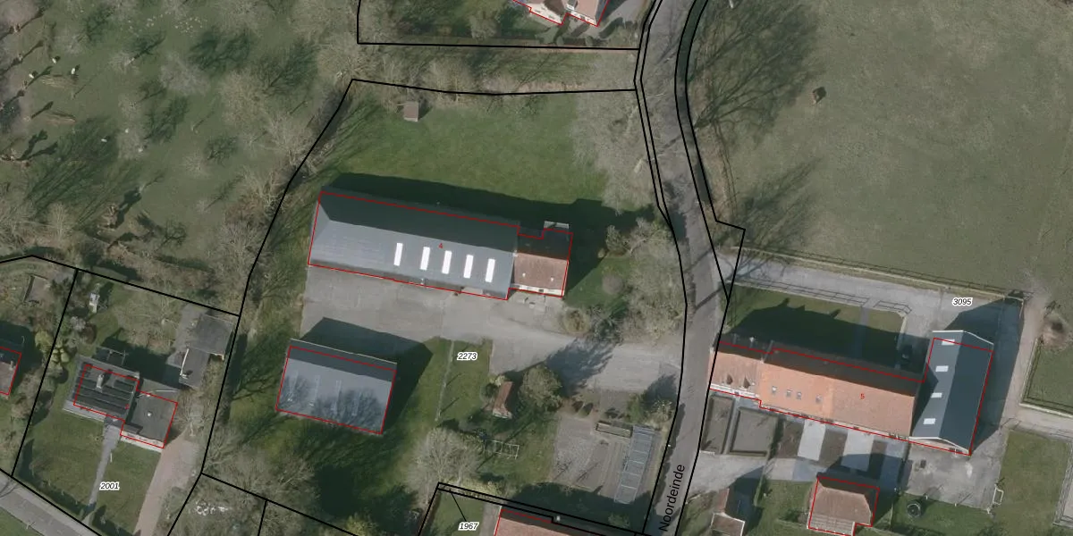 Het perceel waarop Noordeinde 4 staat heeft een oppervlakte van 5953 m². Dit is een zeer groot perceel. De perceeloppervlakte wordt geregistreerd door het Kadaster. Gedetailleerde informatie over de maten van dit perceel kunt u vinden in het rapport Kadastrale kaart met maatvoering van Noordeinde 4.