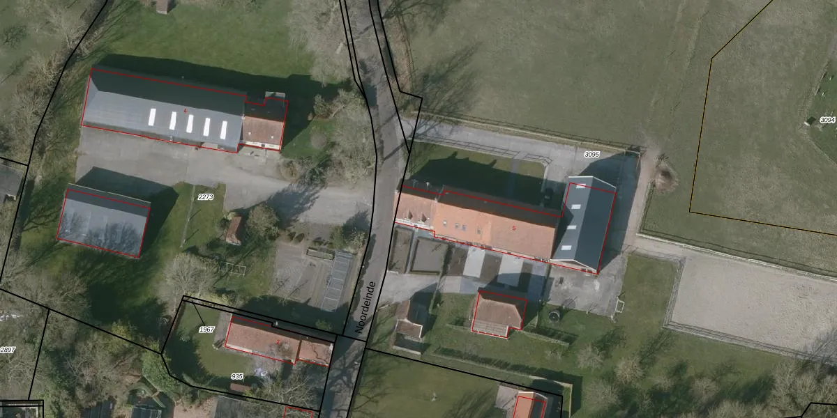 Het perceel waarop Noordeinde 5 staat heeft een oppervlakte van 1,2 ha. Dit is een zeer groot perceel. De perceeloppervlakte wordt geregistreerd door het Kadaster. Gedetailleerde informatie over de maten van dit perceel kunt u vinden in het rapport Kadastrale kaart met maatvoering van Noordeinde 5.