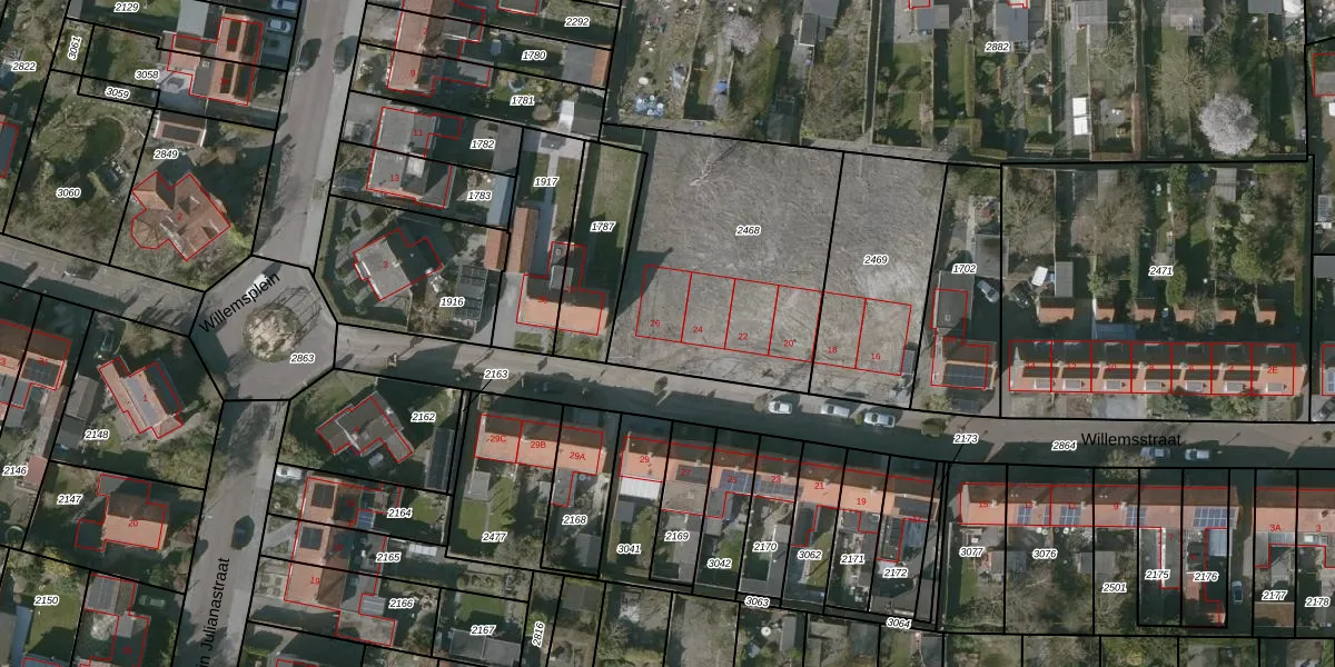 Willemsstraat 26 is gelegen op kadastraal perceel KTG00A2468. Deze kadastrale aanduiding is uniek en wordt gebruikt door het Kadaster om eigendomsrechten en andere zakelijke rechten vast te leggen. Het perceel maakt onderdeel uit van de kadastrale gemeente Kloetinge.
