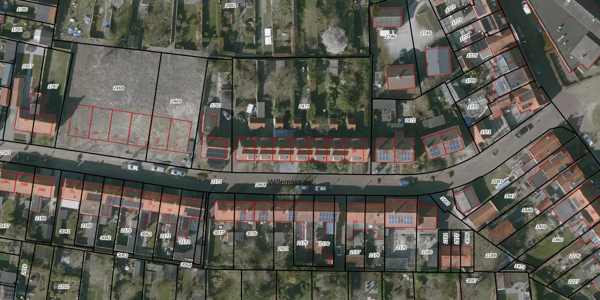 Het perceel waarop Willemsstraat 8 staat heeft een oppervlakte van 1805 m². Dit is een zeer groot perceel. De perceeloppervlakte wordt geregistreerd door het Kadaster. Gedetailleerde informatie over de maten van dit perceel kunt u vinden in het rapport Kadastrale kaart met maatvoering van Willemsstraat 8.